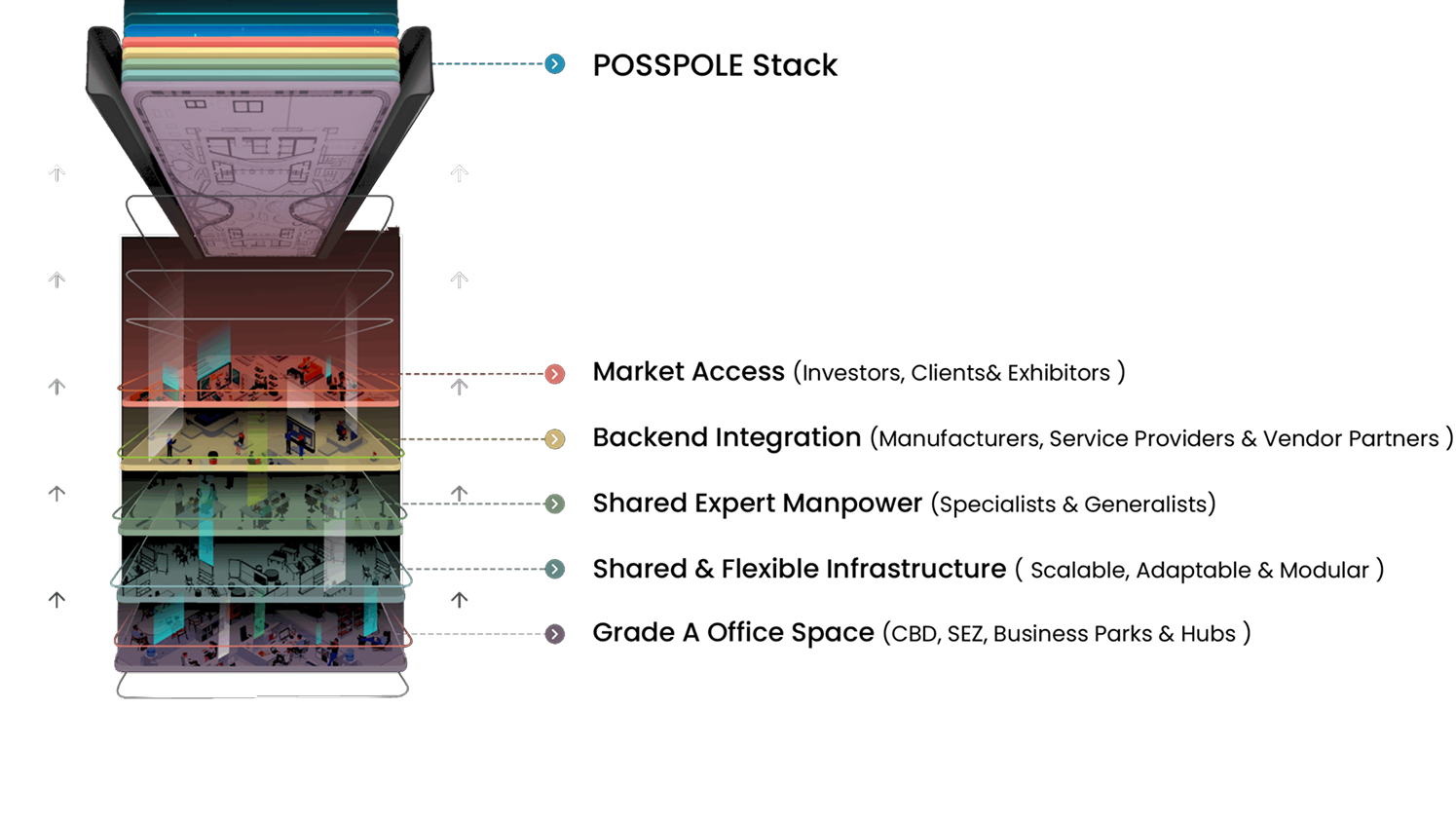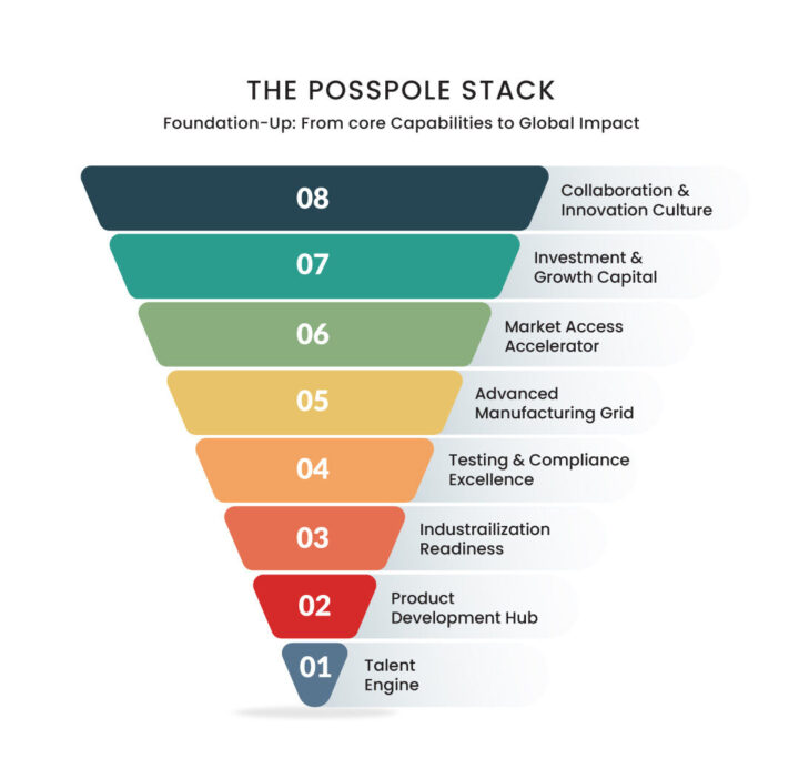 At the core of Posspole’s ecosystem is the “Posspole Stack,” a robust foundation designed to empower entrepreneurs, startups, corporates, researchers and businesses in their high-tech product realization journey. The Posspole Stack is a multi-dimensional framework that encompasses the following key components: